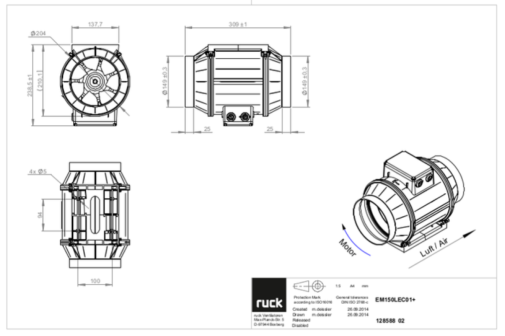 Ruck axial fan / EM 150L EC 01 / RV-128588