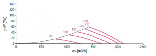 Volume flow at 0 Pa [m³/h] | 2100 |