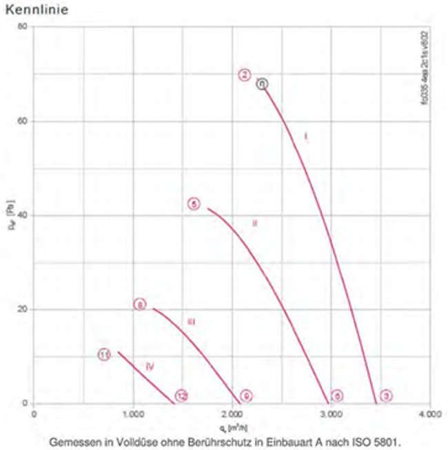 Volume flow at 0 Pa [m³/h]